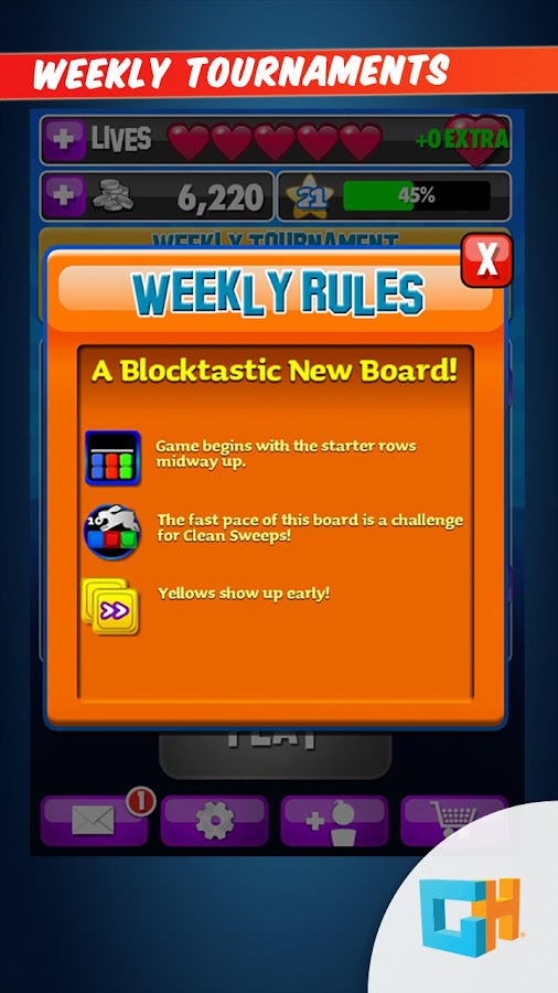 Пригласите своих друзей из Facebook и бросьте им вызов на еженедельных турнирах в этой социальной бесплатной игре-головоломке. Составляйте группы цветных блоков, чтобы набирать высокие баллы, получать награды и подниматься на вершины рейтингов. Практика — путь к совершенству. Зарабатывайте ценные очки опыта, продолжая играть и соревноваться. Разблокируйте бонусы по ходу игры, чтобы набрать больше очков и обойти друзей до того, как истечет ваше время.