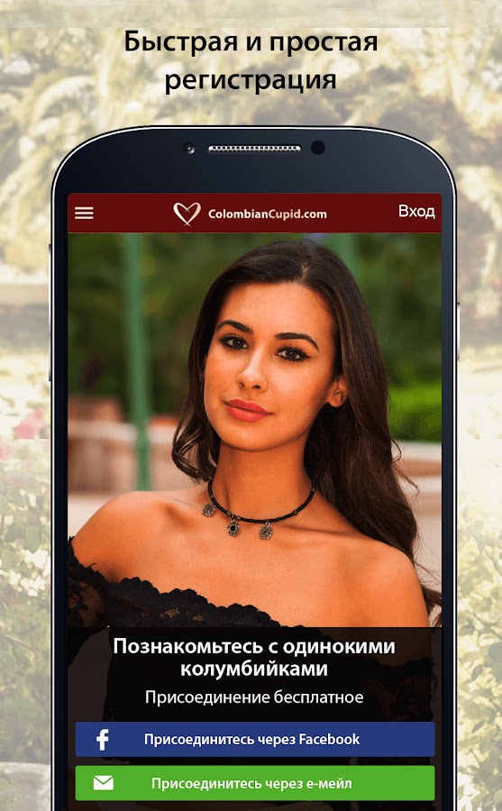 ColombianCupid — ведущее приложение для знакомств в Колумбии, который помогает тысячам одиноких мужчин найти свою идеальную колумбийскую пару. Идеально подходит для поисков любви, свиданий и долговременных отношений. Если вы ищете именно интерактивный и увлекательный опыт колумбийских знакомств, то ColombianCupid — это латиноамериканское приложение знакомств именно для Вас. С помощью мобильного приложения ColombianCupid вы можете создать учетную запись и начать писать свою историю любви за считанные минуты. Присоединяйтесь сейчас и начинайте просмотр профилей!