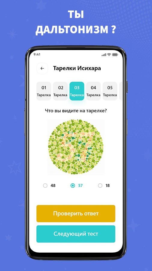 Скачайте приложение Тест на цветовую слепоту для Android бесплатно - последняя версия (2.51) уже доступна для установки на ваш телефон или планшет.