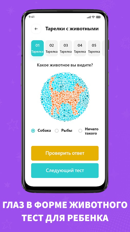 2. Тест на дальтонизм с использованием чашек с животными. Это помогает для теста на дальтонизм для детей.