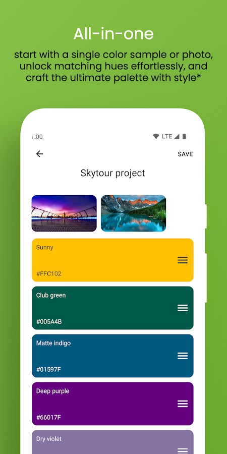 • Продвинутая палитра*: Разблокируйте лучший инструмент для создания цветов. Добавляйте цвета вручную, захватывайте их с помощью камеры, извлекайте из фотографий и выбирайте для добавления. Легко переставляйте цвета и находите подходящие оттенки без труда.