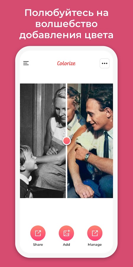 Скачайте приложение Colorize от Photomyne для Android бесплатно - последняя версия (3.10) уже доступна для установки на ваш телефон или планшет.