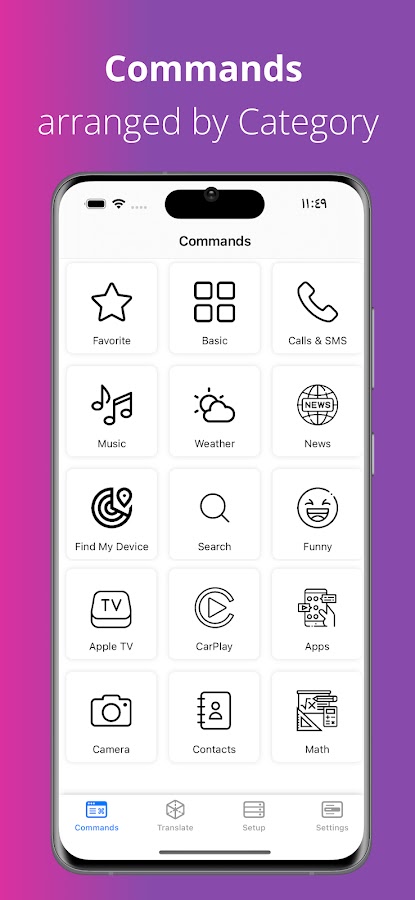 Раскройте возможности приложения Siri с помощью голосовых команд по категориям! Получите на Siri все ваши любимые функции: базовые, напоминания, календарь, HomePod, заметки, музыку, звонки, текстовые сообщения, управление iPhone, забавные команды Siri, переводы, управление Apple TV и многое другое! Испытайте лучшего помощника Siri, оптимизированного для Android. Загрузите команды Siri Voice Assistant и попрощайтесь с ограничениями! Мы предоставляем встроенные необходимые команды для Siri.