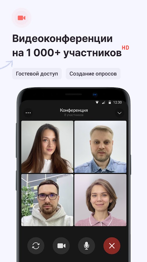 • Видеоконференции на 1000+ участников позволяют оперативно проводить встречи с командой из любой точки мира.