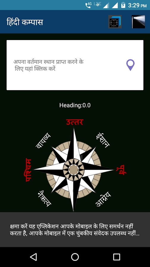 Установите «Компас» на хинди – दिशा सूचक यंत्र, самое надежное приложение-компас, разработанное для пользователей хинди. Путешествуйте по миру уверенно – онлайн или офлайн!