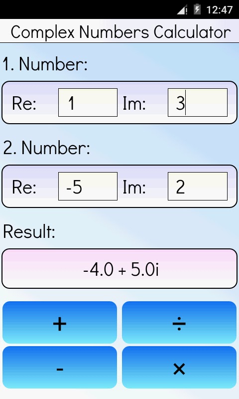 Скачайте приложение Комплексные числа калькулятор для Android бесплатно - последняя версия (23.8) уже доступна для установки на ваш телефон или планшет.