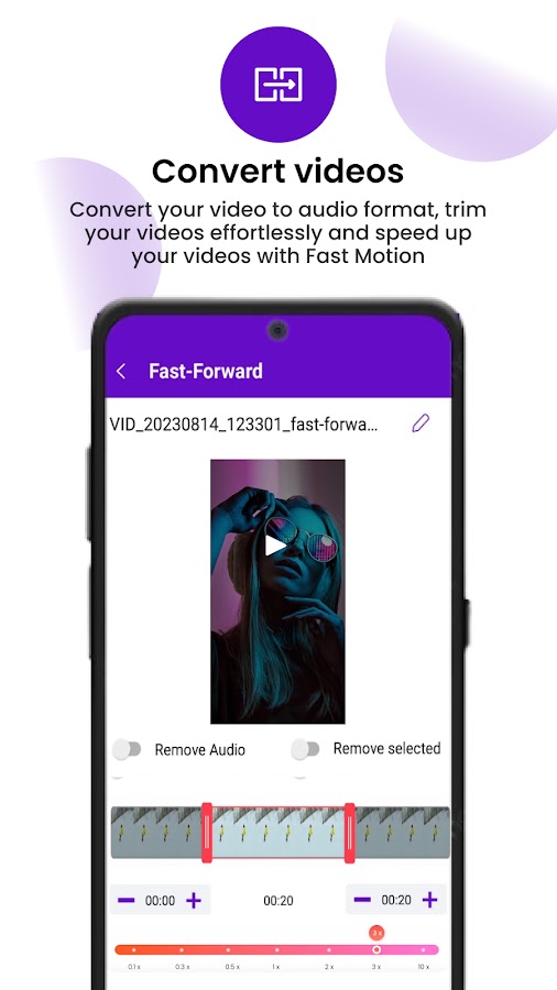 Хотите быстро редактировать и обрезать видео? Удалите ненужные части видео за считанные секунды, используя встроенный видеотриммер. Благодаря интуитивно понятному пользовательскому интерфейсу вы можете легко выбирать, воспроизводить и обрезать каждую часть видео до миллисекунд.