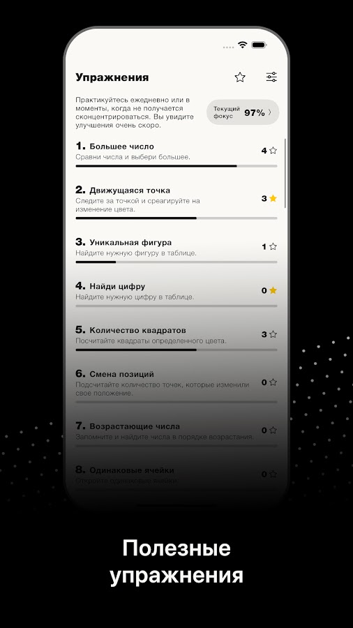 Вот что вас ждет в приложении «Тренировка Концентрации» для повышения продуктивности: