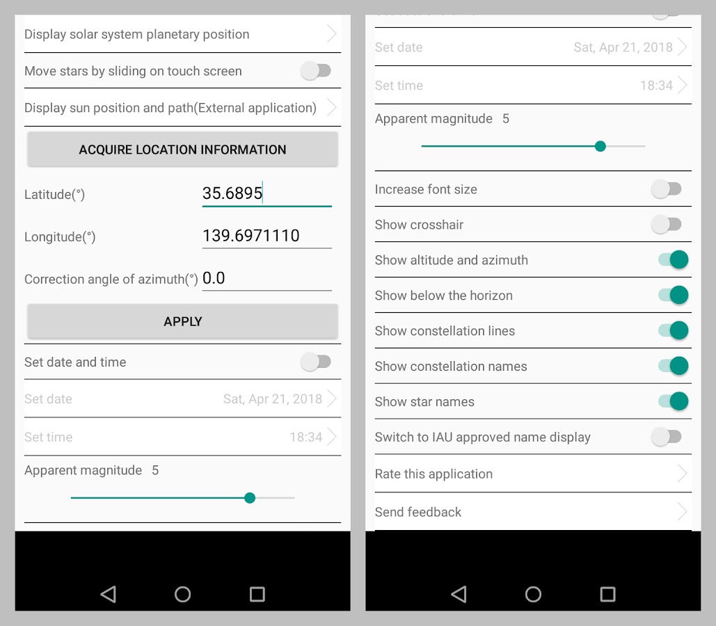 Вы можете отобразить названия около 100 ярких звезд, созвездий, эклиптики, небесный экватор, объекты глубокого космоса, МКС, полюс мира и так далее.