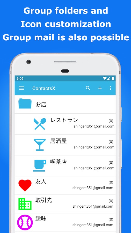● Несколько групп можно сгруппировать вместе с помощью функции папки группы. (Вы также можете отправлять электронные письма и SMS всем членам группы в папке группы)
