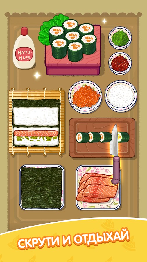 С каждым завершенным блюдом вы разблокируете новые рецепты, ингредиенты и забавные инструменты! 🍴🍣🍲