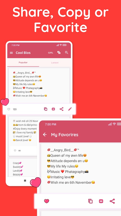 Гендерная фильтрация помогает мальчику найти отношение к Insta Bio, а девочка может легко найти симпатичную девчачью биографию в IG Bios.