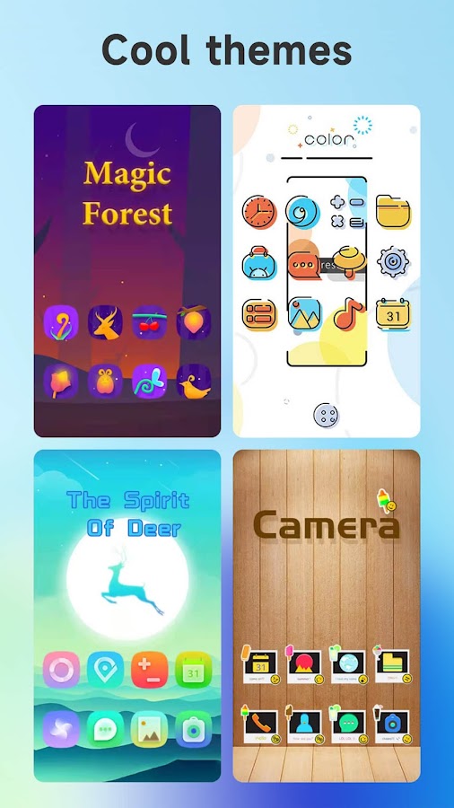 + Cool Mi Launcher имеет более 500 крутых тем и более 1000 красивых обоев, вы можете выбрать то, что вам нравится