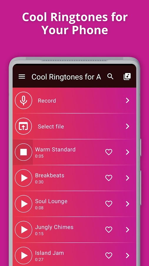 2. Слушать самые крутые рингтоны на телефон и выбрать свой любимый крутые звуки на звонок. Записать рингтон или загрузите свой собственный рингтон из файлов.