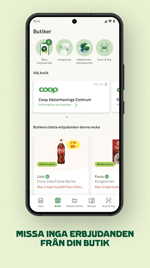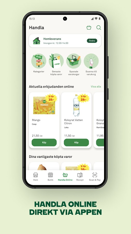 Здесь вы также можете делать покупки онлайн и быстро заказать еду на дом или забрать ее в магазине. Вы выбираете из широкого ассортимента товаров и по такой же низкой цене, как и в Stora Coop.