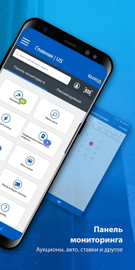 • Удобный доступ к онлайн-аукционам, поиску транспортных средств и истории поиска