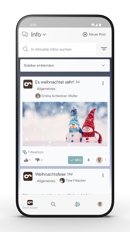 CORE smartwork — единственное приложение для сотрудников, которое охватывает все области внутренней коммуникации и организации. От меню до плана обучения, от политики ИТ-безопасности до опроса сотрудников. Все в одном – очень несложное и простое в использовании.