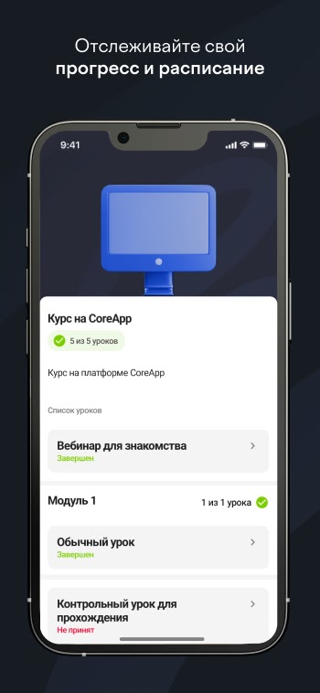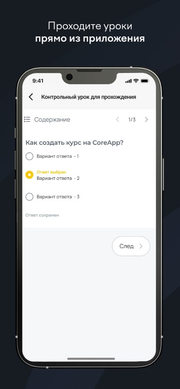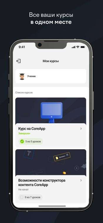 С CoreApp вы сможете гибко планировать свое обучение, выбирать наиболее подходящие вам курсы и не ограничиваться во времени и месте для обучения.