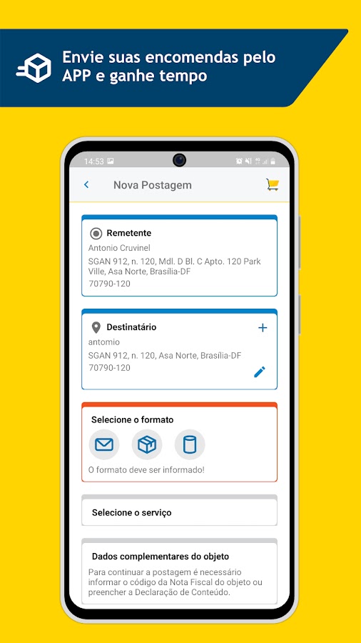 Загрузите приложение и, если вам понадобится помощь, получите доступ к нашим каналам обслуживания. Correios.com.br/falecomoscorreios/service center.