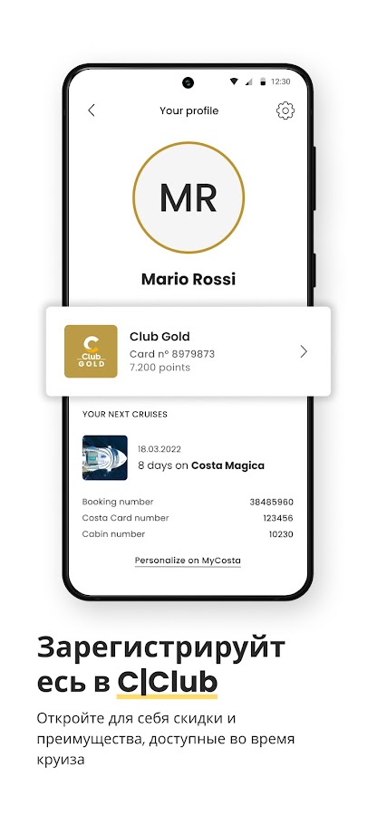 Легкий доступ к вашему статусу в CostaClub, баллам, привилегиям, скидкам, истории круизов и будущим отпускам