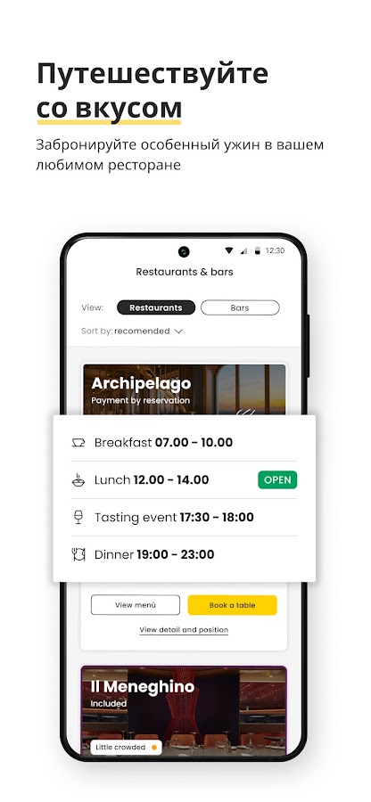 Получите информацию обо всех экскурсиях и ресторанах; оказавшись на борту, вы сможете забронировать ужин и свою любимую экскурсию