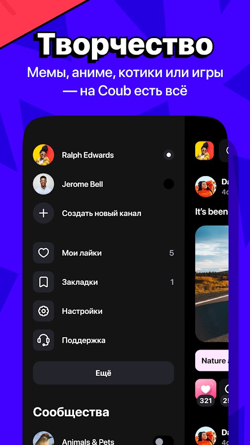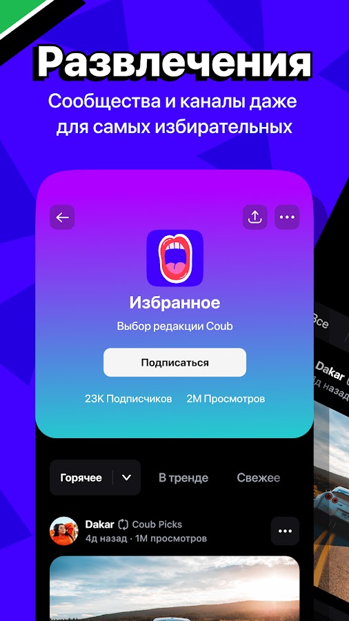 Тематические каналы покажут вам самое интересное из того, что создали другие пользователи. Вы можете подписаться на каналы других коуберов и делиться понравившимися роликами с друзьями в соцсетях.