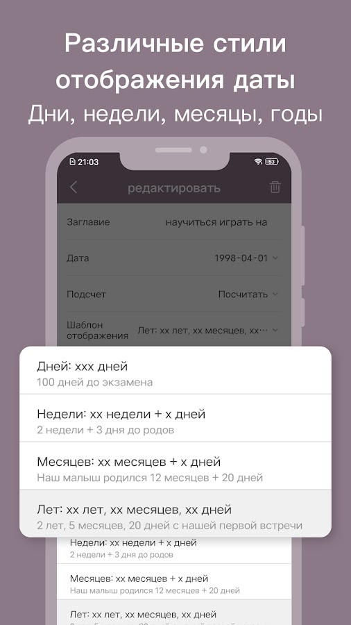 * Не только обратный отсчет, но и положительный результат, подсчет дней или недель