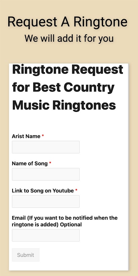 Любите музыку кантри? Хотите персонализировать свой телефон самыми популярными кантри-мелодиями? Не смотрите дальше! Country Music Ringtones предлагает огромную библиотеку бесплатных, официально лицензированных кантри-рингтонов, от сегодняшних лидеров чартов до непревзойденной классики. Установите мелодию звонка, будильник или звук уведомлений для своих любимых исполнителей и никогда не пропустите ни одной детали.