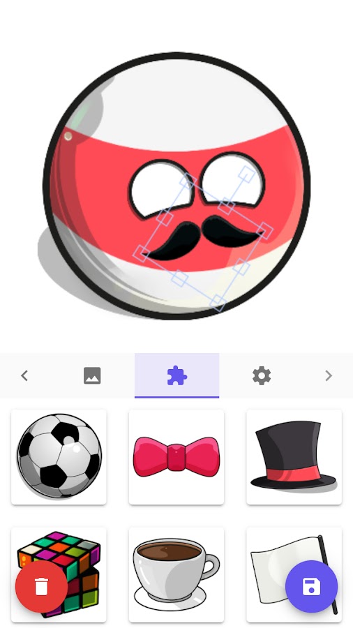Предметы — Закончат образ вашего стикера. Их можно добавлять, удалять, передвигать;