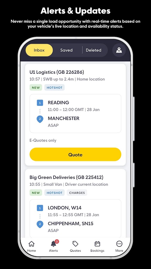 Когда член Курьерской биржи сообщает о загрузке на бирже, и вы находитесь в нужном месте с автомобилем нужного размера, вы или ваш контроллер автоматически получите push-уведомление или уведомление по электронной почте.