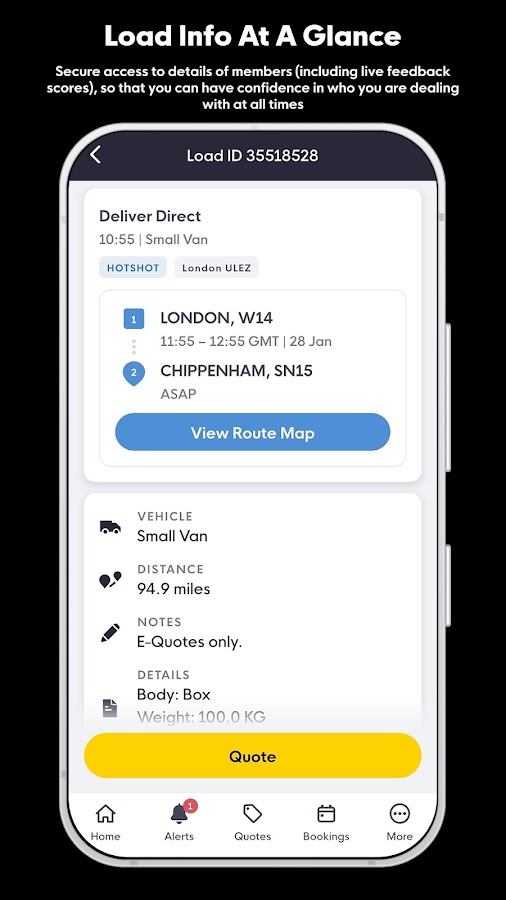 Получите бронирование прямо в мобильном приложении Courier Exchange с полной информацией, включая; контактные имена, адреса, ссылки, накладные и любые специальные инструкции.