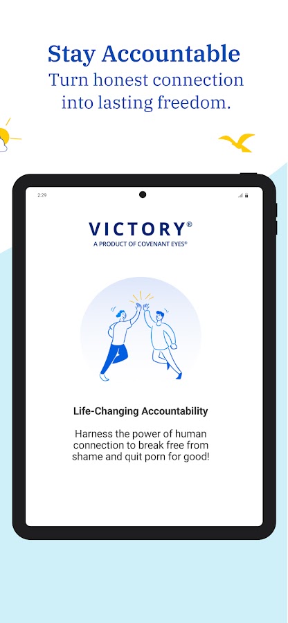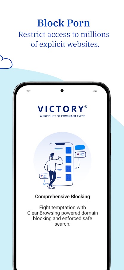 Victory by Covenant Eyes — это решение, ориентированное на отношения, которое поможет защитить ваше сердце от искушений, преодолеть пристрастие к порнографии и вернуть себе жизнь. Victory предлагает как бесплатные функции, которые помогут любому человеку начать, так и мощные инструменты для подотчётности и защиты, доступные исключительно подписчикам.