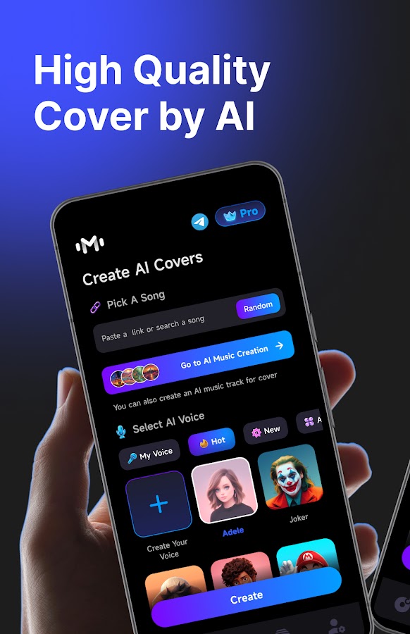 Скачайте приложение Cover AI Создатель кавер-песен для Android бесплатно - последняя версия (1.1.3) уже доступна для установки на ваш телефон или планшет.