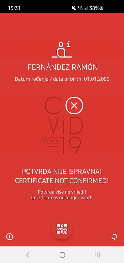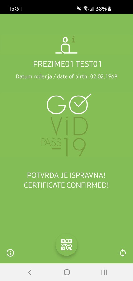 Сканируя код, мобильное приложение позволяет проверить национальную цифровую подпись данных в QR-коде, проверить действительность сертификата в соответствии с бизнес-правилами применения в Республике Хорватия и распечатать сообщения об успешной или неудачной проверке. цифровой подписи и срока действия сертификата.