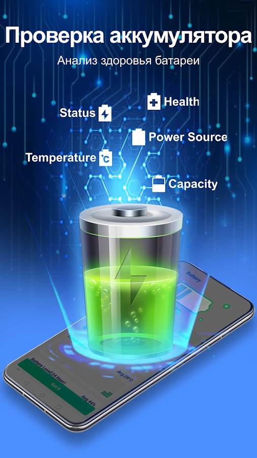 Он может отображать состояние батареи устройства, включая статус питания батареи, температуру, состояние здоровья, оставшееся время и другую подробную информацию.