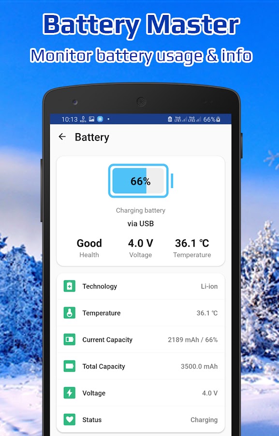 Он может отображать состояние аккумулятора устройства, включая состояние заряда аккумулятора, напряжение, температуру, состояние здоровья, оставшееся время, ход зарядки и другую подробную информацию.