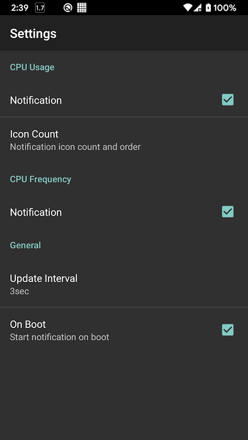 CPU Статистика отображает, что детали использования в вашем баре телефоны состояния.