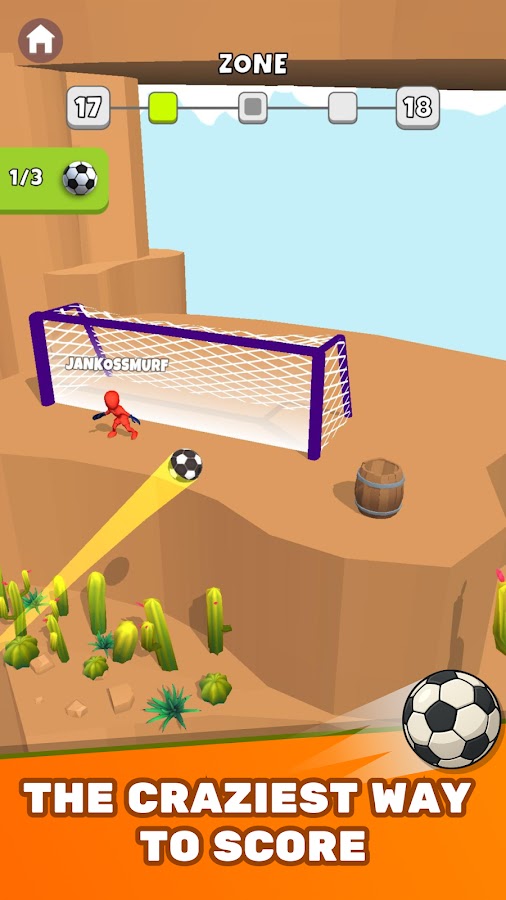 Забудьте о традиционных футбольных играх, где вы управляете 11 футболистами или играете за менеджера футбольной команды. Здесь все просто, вы управляете мячом и можете делать сумасшедшие вещи, чтобы забить гол!
