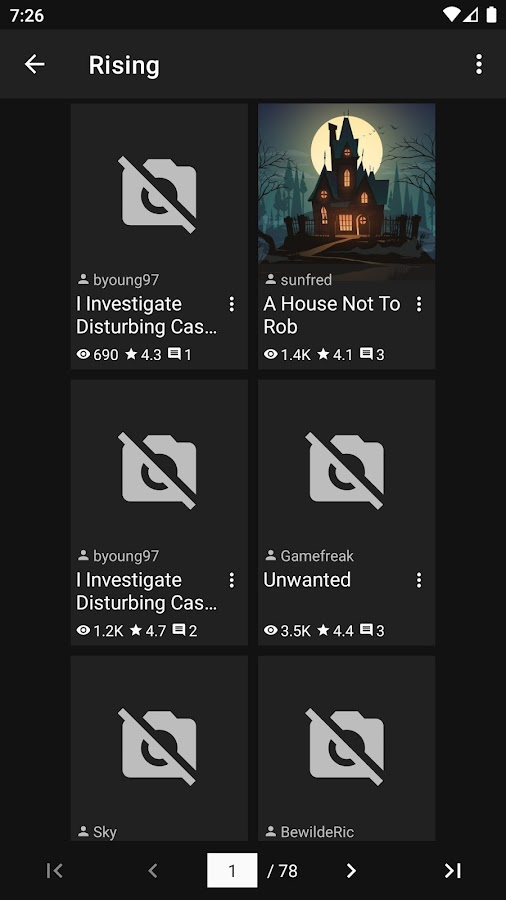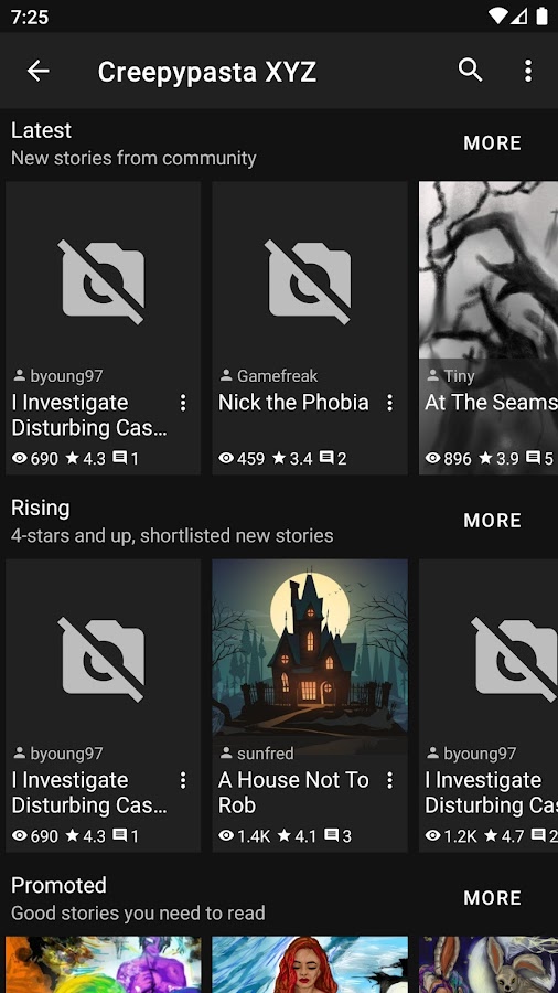 Если вам нужна только лучшая крипипаста для быстрого чтения, не волнуйтесь, это приложение имеет рейтинг и систему трендов. Забудьте о том, что вы просматриваете страницы часами, чтобы найти хорошую историю. Просто откройте приложение и начните читать то, что понравилось другим людям!