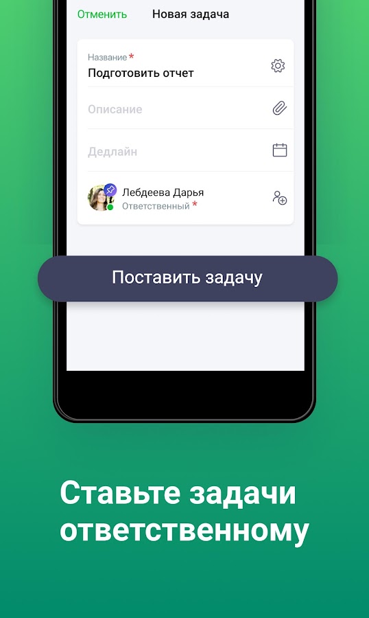 Распределяйте задачи между сотрудниками и получайте уведомления о «горящих» сроках.