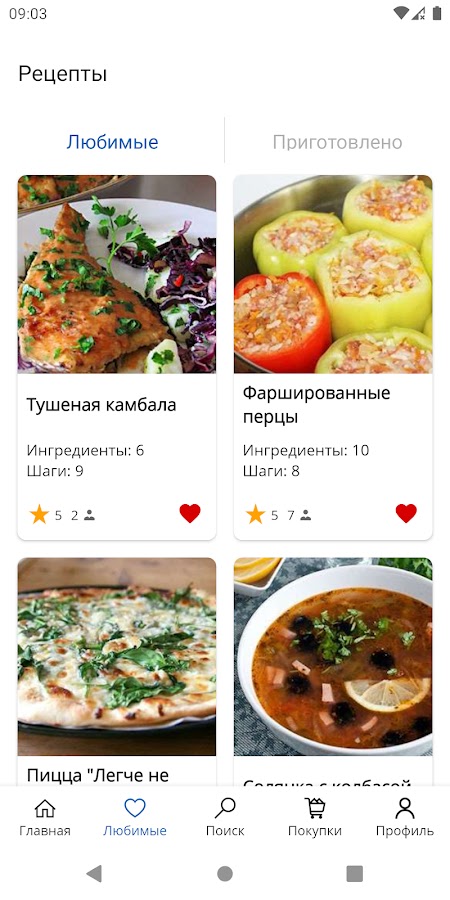 ❤️ Избранное и список покупок: Сохраняйте любимые рецепты и составляйте список ингредиентов для удобного похода в магазин.