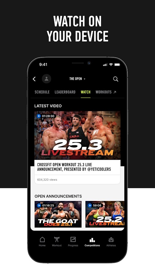 Соревнования — присоединяйтесь к сезону CrossFit Games из любой точки мира. Просматривайте расписание, выполняйте тренировки, отправляйте результаты Open, отслеживайте свой рейтинг в таблице лидеров, смотрите трансляции и следите за профилями спортсменов — всё в одном месте.