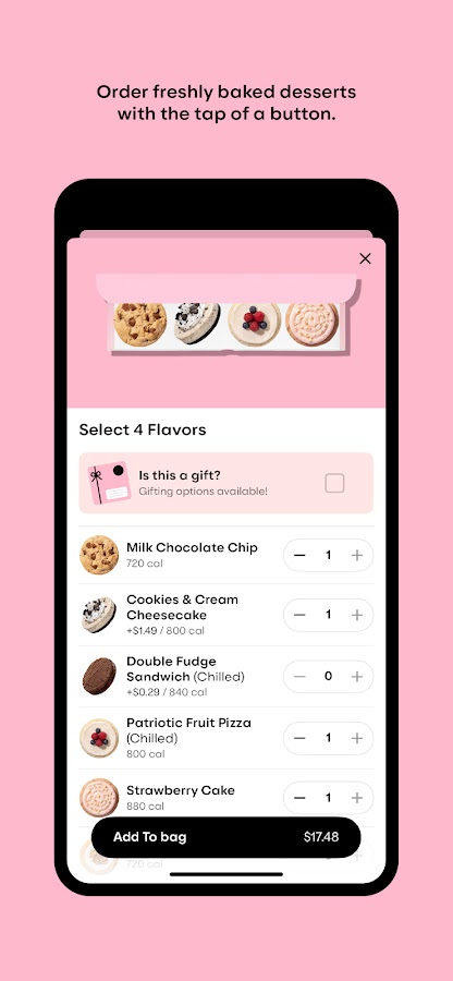 — Зарабатывайте крошки лояльности, заказывая самовывоз, доставку и даже кейтеринг. Как только вы наберете 100 крошек лояльности, они будут конвертированы в 10 долларов Crumbl Cash, которые вы сможете использовать для самовывоза, местной или национальной доставки.