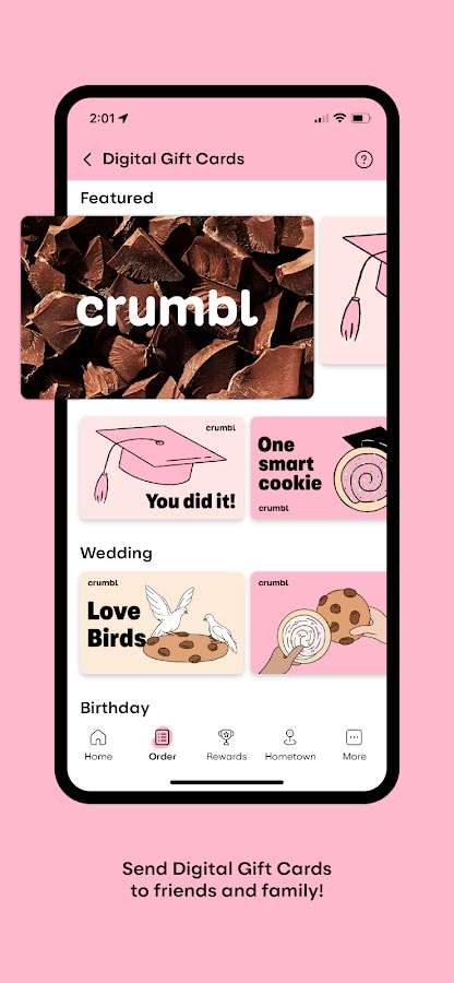Приложение Crumbl — это универсальный магазин всего, что нужно для Crumbl! Если вам нужно забрать, доставить или отправить печенье или организовать кейтеринг, мы подарим вам любимое печенье вашим любимым способом. Загрузите сейчас и начните зарабатывать крошки лояльности, которые можно превратить в бесплатные файлы cookie! Сюда входят такие вкусности, как бесплатное печенье на день рождения и многое другое.