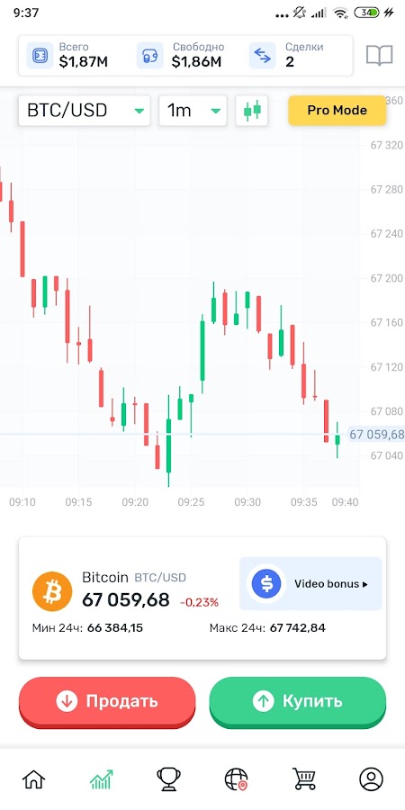 В нашем приложении вы не сможете купить и продать криптовалюты, как на классической крипто бирже. Здесь вы играете на понижении и повышении курса криптовалют. Это называется торговля Форекс ( Forex- Foreign exchange market) — торговля на разнице курсов криптовалют.
