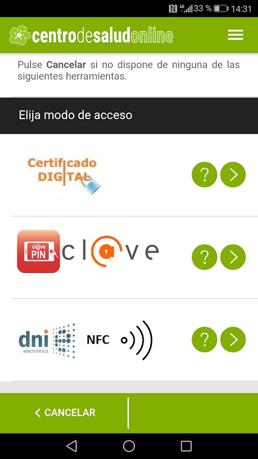 доступ кл @ ве и даже система также возможно DNIe, до тех пор, как устройство имеет NFC, и если DNIe, по крайней мере 3,0 и пароль в вашем распоряжении.