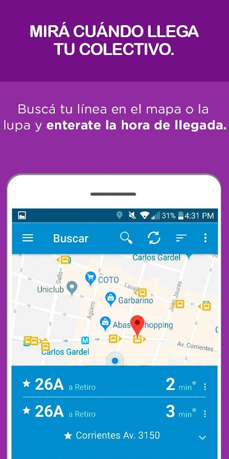 У нас есть информация в реальном времени о более чем 200 автобусных линиях в Сити и Большом Буэнос-Айресе. Существует мало, чтобы добраться до всех групп. Познакомьтесь с теми, которые включены в www.argentina.gob.ar/CuANDOSUBO.