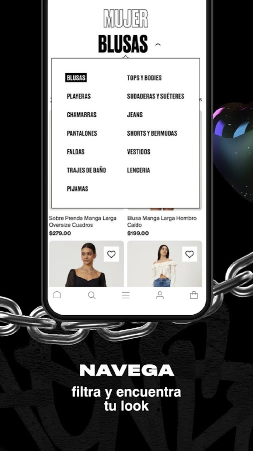 Используйте наши фильтры, чтобы найти свою любимую одежду и увеличить масштаб простым движением. Не упустите ни одной детали!