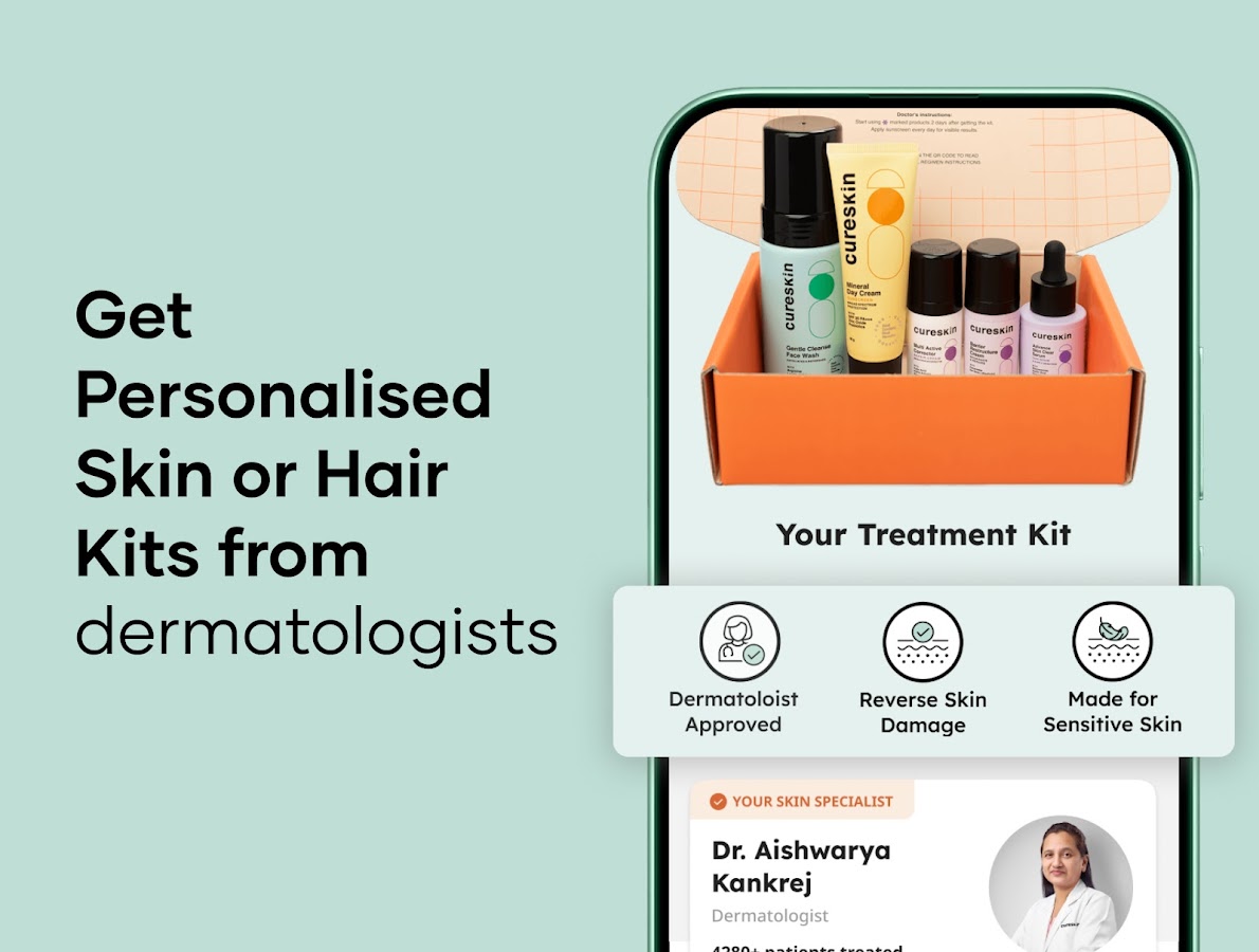 Боретесь с постоянными прыщами, шрамами от акне, пигментацией, темными пятнами или выпадением волос? Cureskin поможет вам. Приложение Cureskin, которому доверяют более 1,7 миллиона пользователей, является лучшим приложением для ухода за кожей и лечения выпадения волос, предлагающим персонализированные и эффективные методы лечения. Благодаря научно обоснованному подходу, разработанному специально для индийского типа кожи и волос, Cureskin обеспечивает реальные результаты, на которые вы можете рассчитывать.