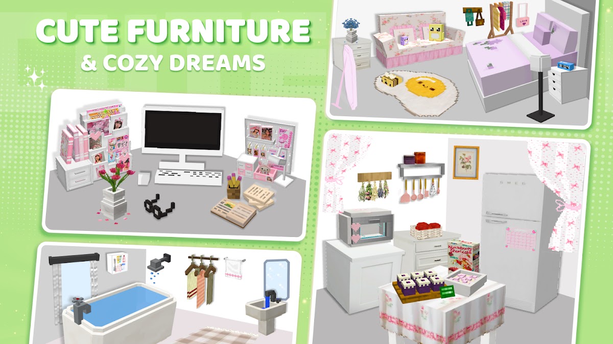 Превратите свой мир Minecraft в уютный розовый рай! Украшайте пастельной мебелью, милыми предметами интерьера, сверкающим освещением и розовыми блоками для дома, чтобы создать свой собственный сказочный особняк.